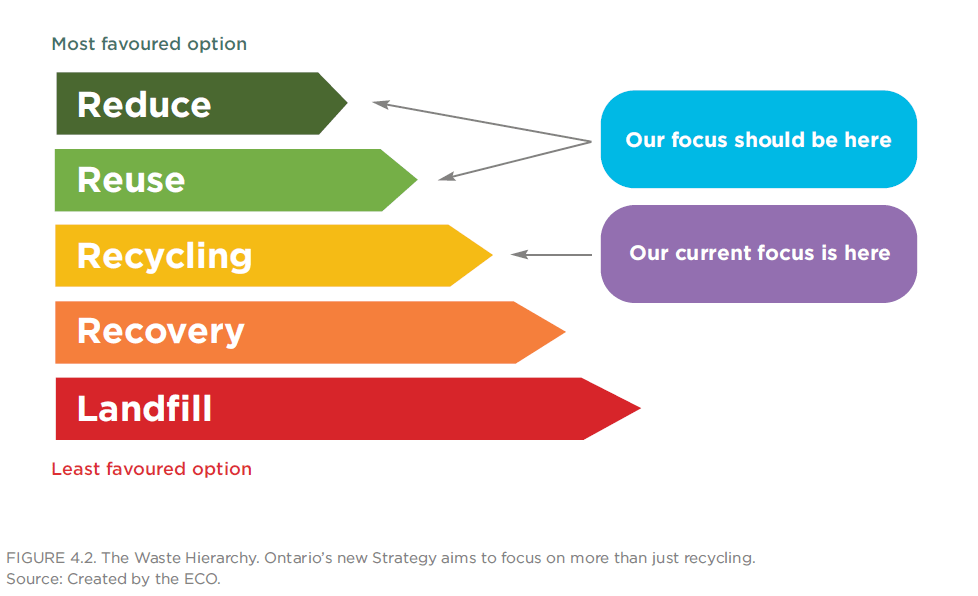 Here in Canada, the waste hierarchy most often referenced is by the Canadian Council of Ministers of the Environment (CCME).
